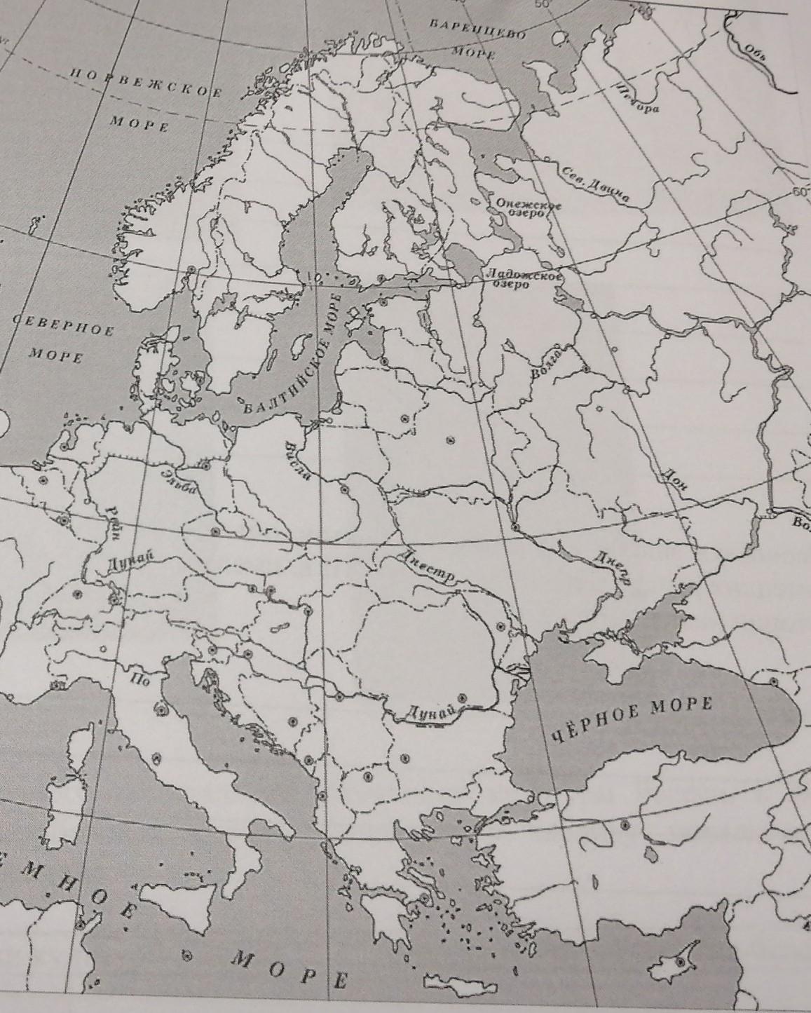 Заштрихуйте на контурной карте один четырёхугольник, образованный градусной сеткой,