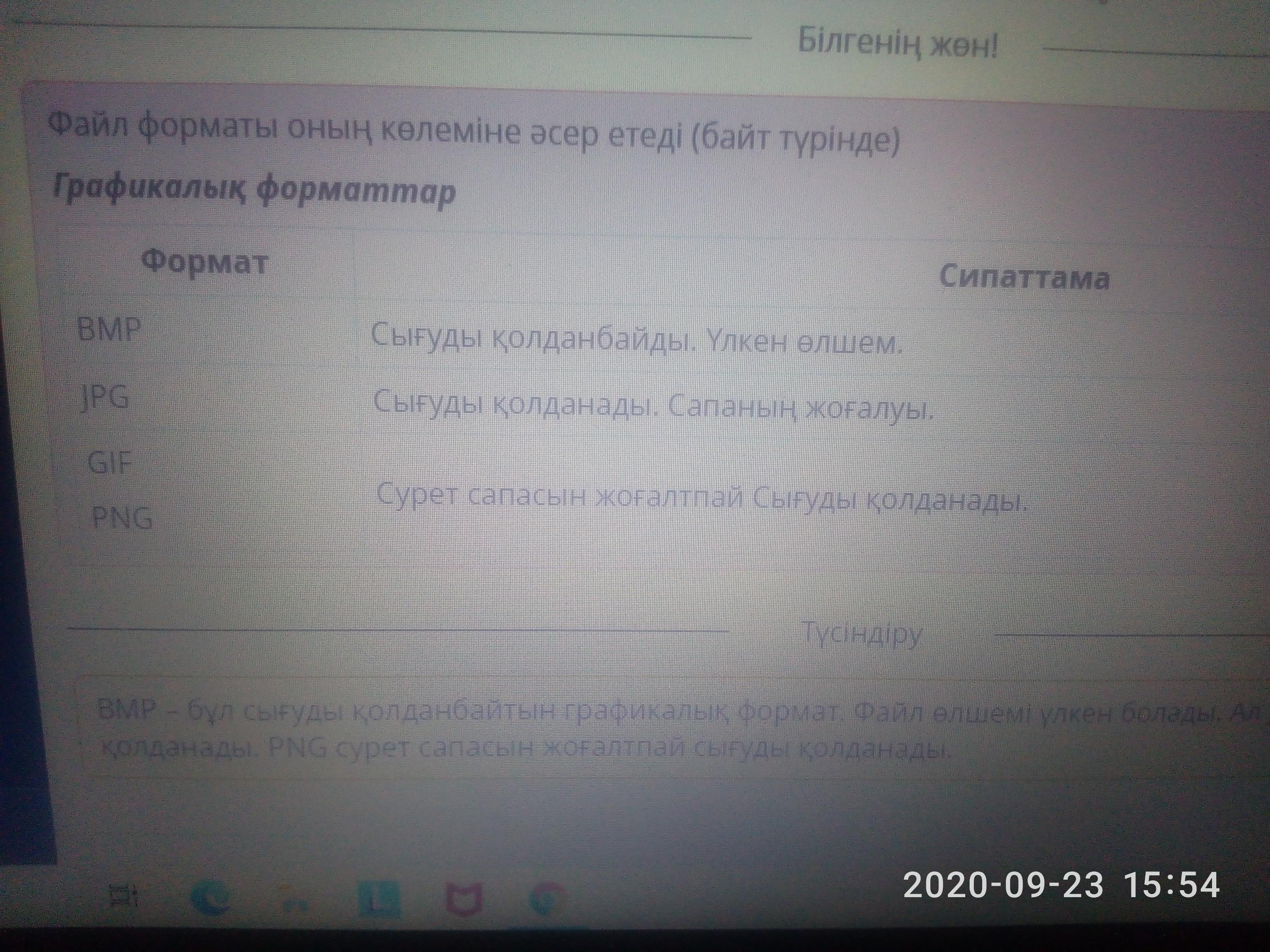Форматты оның сипаттамасына қарай сәйкестендір.