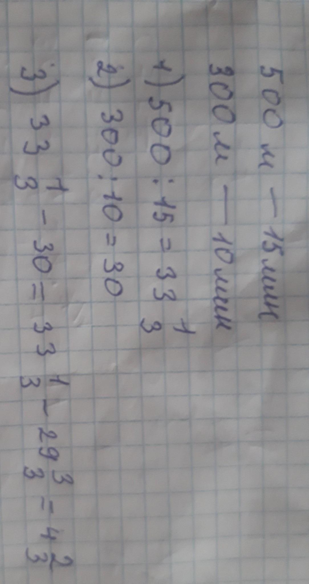 Задача: велосипедист проехал 500м -за 15мин,300м - за 10 мин .Найдите среднию скорость велосипедиста?