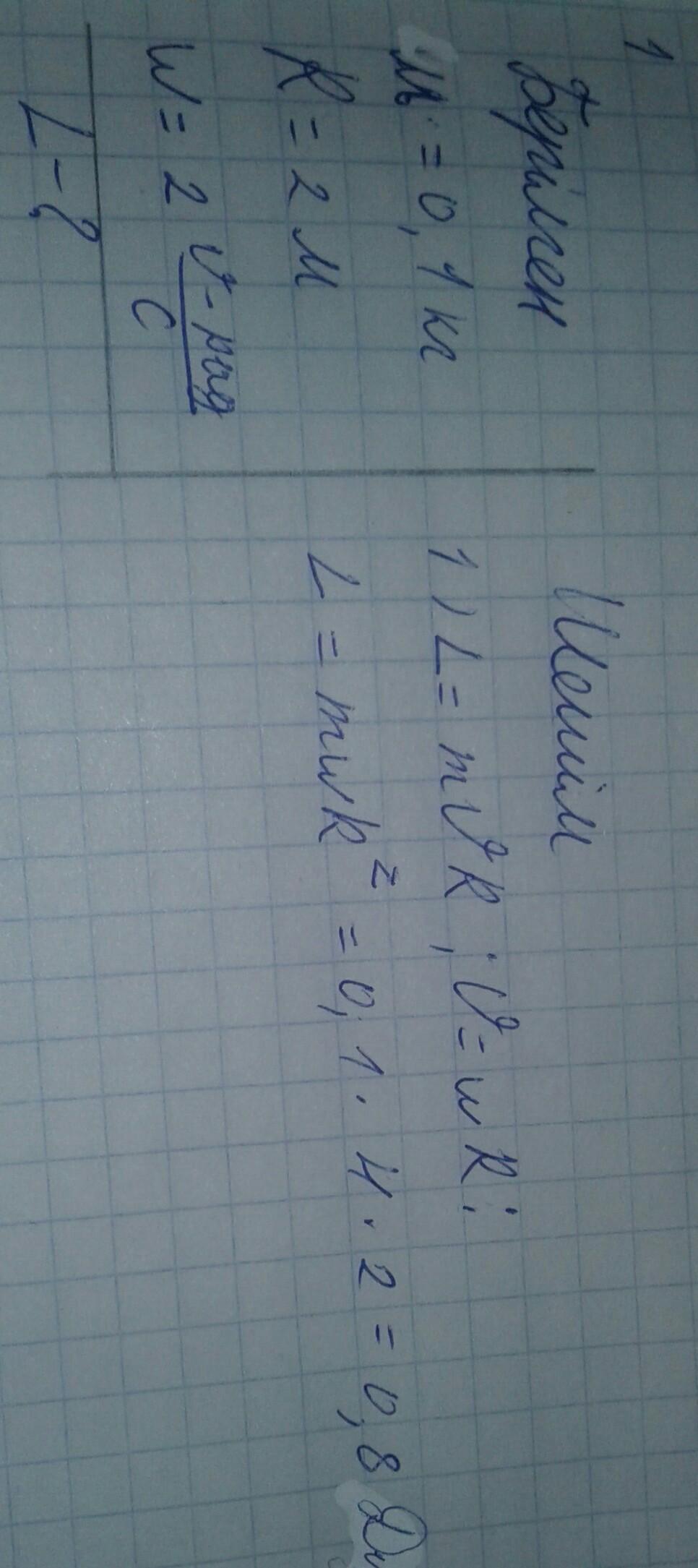 определите момент импульса тела массой 0.1 кг, вращающегося по окружности радиусом 2 м в горизонтальной плоскости с угловой скоростью 2пи рад/с.