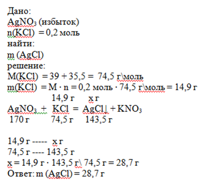 m(AgCl) = ν·M = 0,2·143,5 = 28,7 г.
