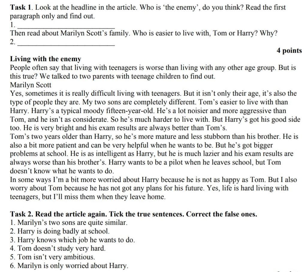 2. Tom's easier to live with than Harry. Because he is a lot noisier and more aggressive, he is not considerate