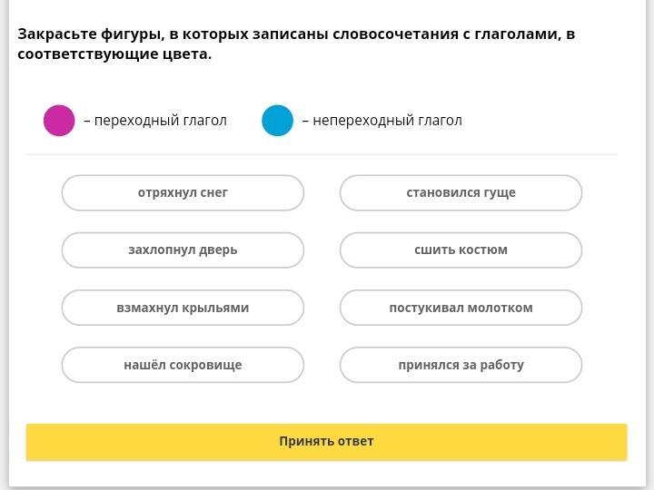 Ответ: в первом столбике 1,2,4- переходные глаголы, 3-непереходный.