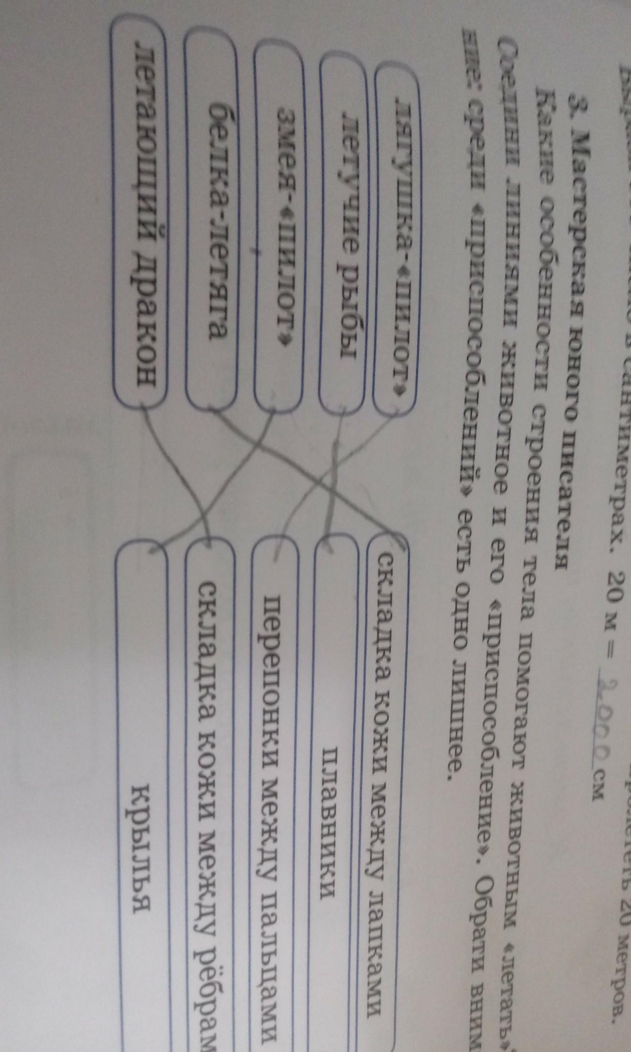 Соединит иннями животное и его «приспособление». Обрати внима-