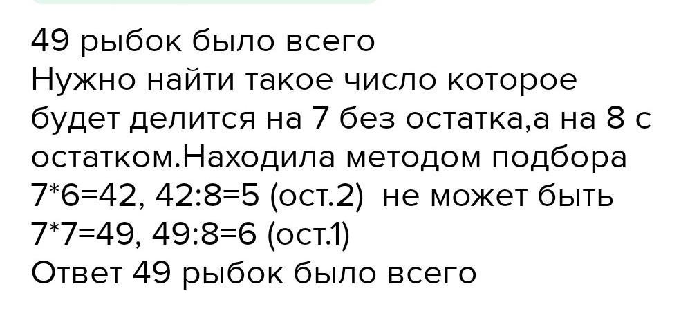 В семь аквариумах было поровну рыбок. Установили ещё один аквариум, и рыбок расселили такая чтобы во всех аквариумах, кроме одного, их стало поровну, а в одном – на 1 больше, чем в каждом из остальных. Сколько всего было рыбок, если их было меньше 100?