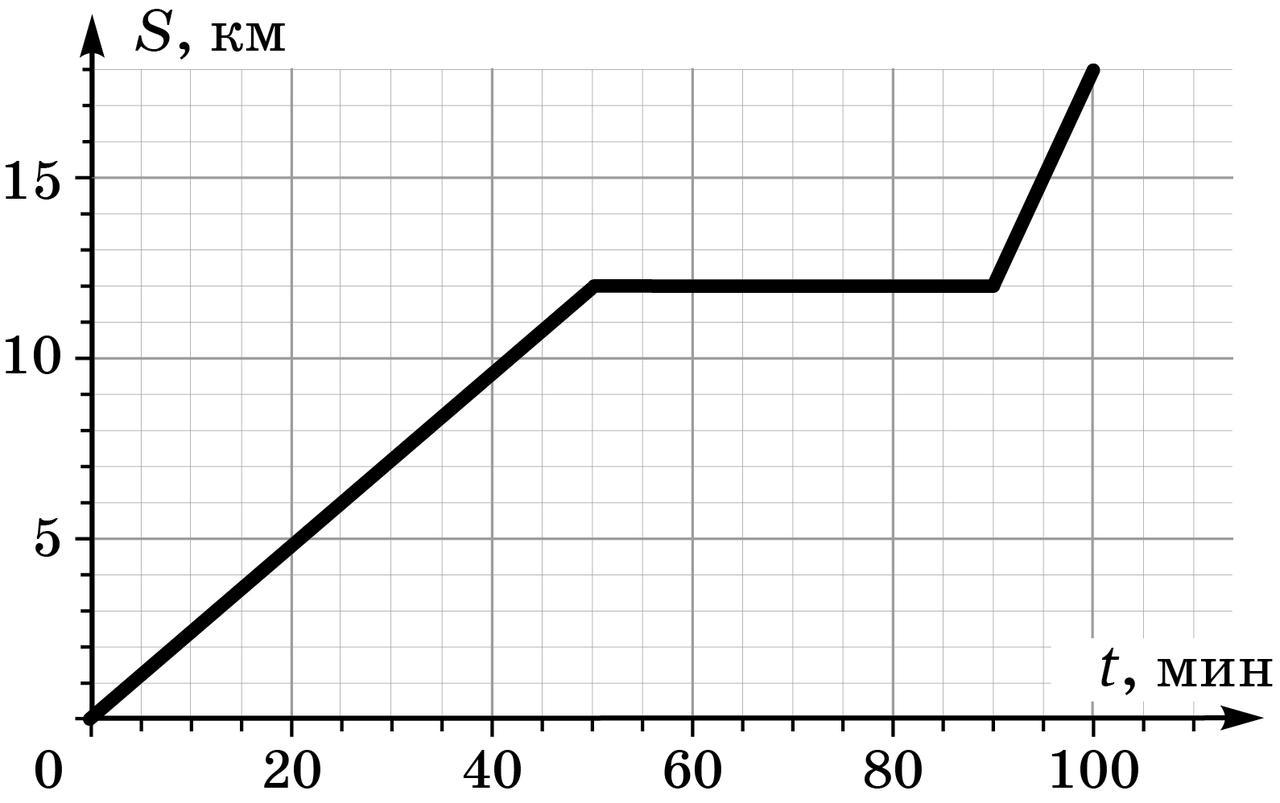 Зависимость пути велосипедиста, пройденного им, от времени показанного на графике.