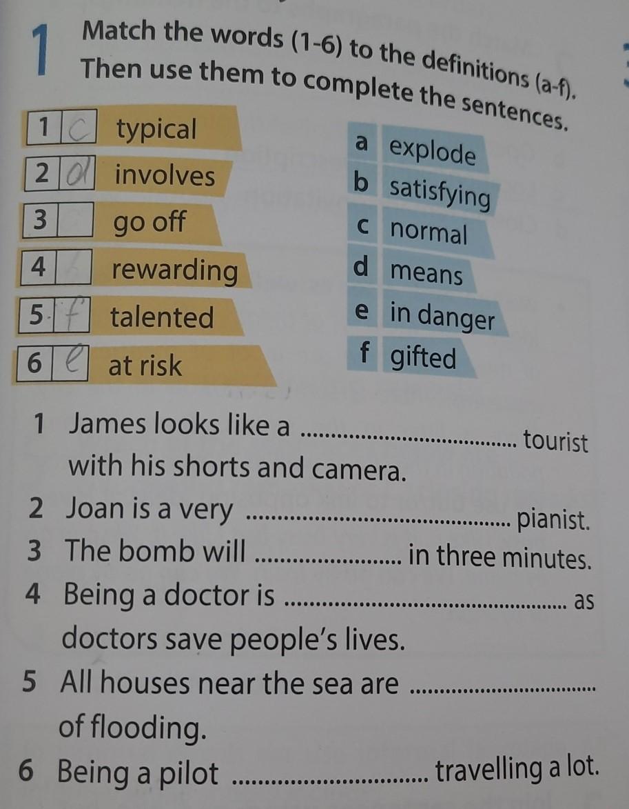 1- typical, 2- talented, 3- go off, 4- rewarding, 5- at risk, 6- involves