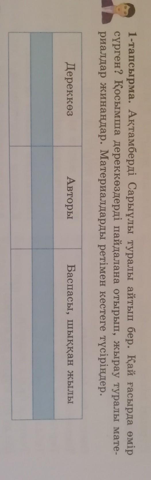 риалдар жинаңдар. Материалдарды ретімен кестеге түсіріңдер.