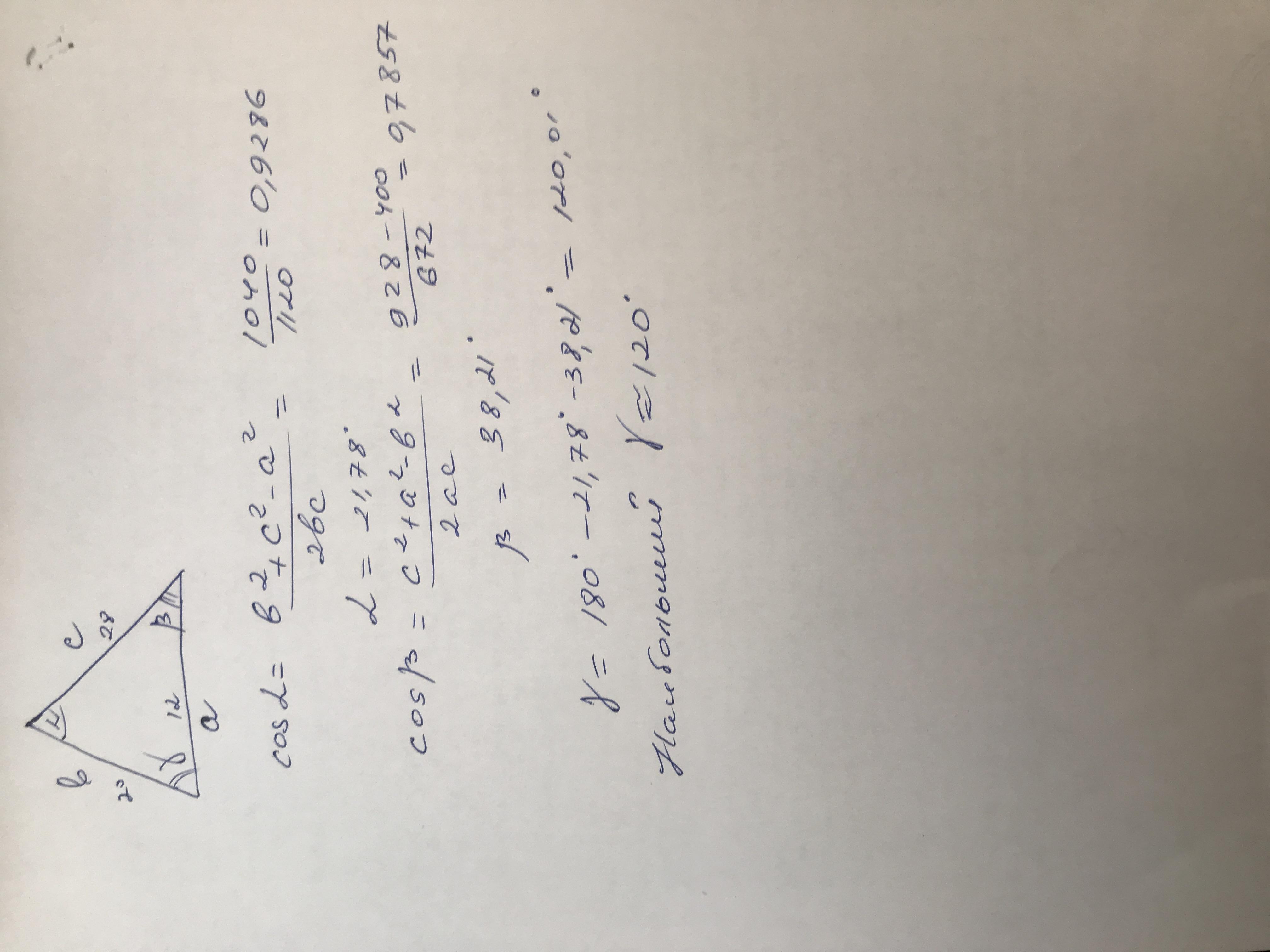 Угол между 12 и 20 см