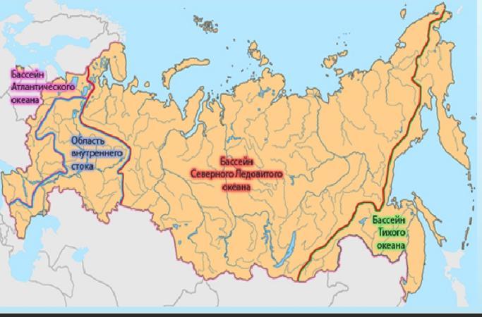 Наибольшая часть территории России принадлежит бассейну Северного Ледовитого океана.