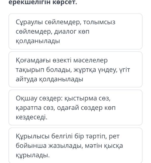 Құрылысы белгілі бір тәртіп, рет бойынша жазылады, мәтін қысқа құрылады.э