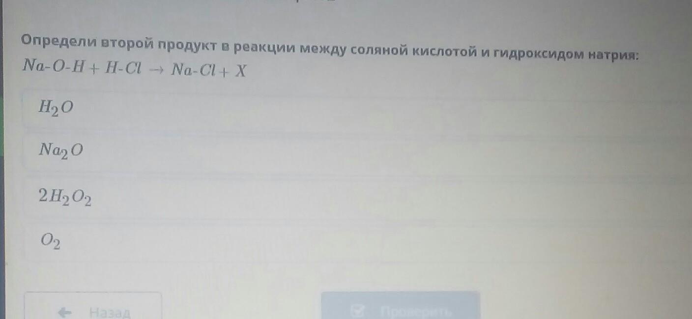 Определи второй продукт в реакции между соляной кислотой и гидроксидом натрия: