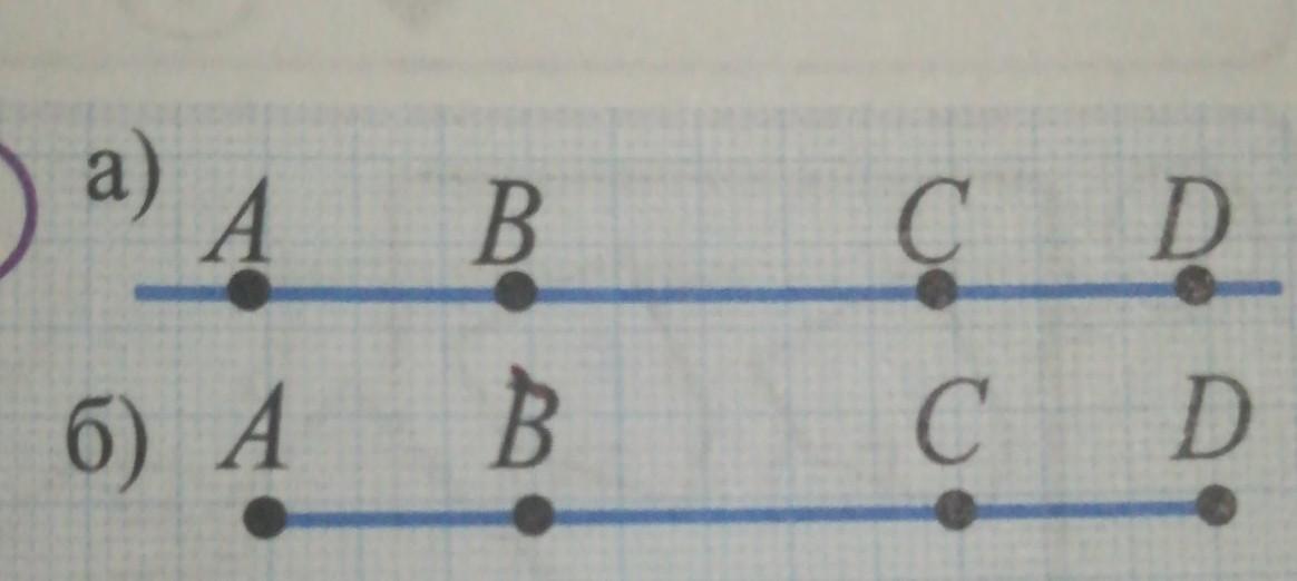 Укажите Между какими точками лежит точка B на рисунке 5.a? какие точки лежат по одну сторону от точки C?