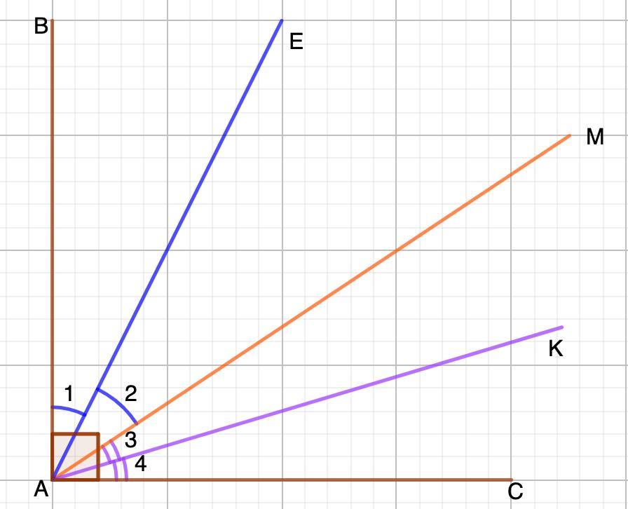 Луч, проведённый из вершины прямого угла, делит его на два угла.