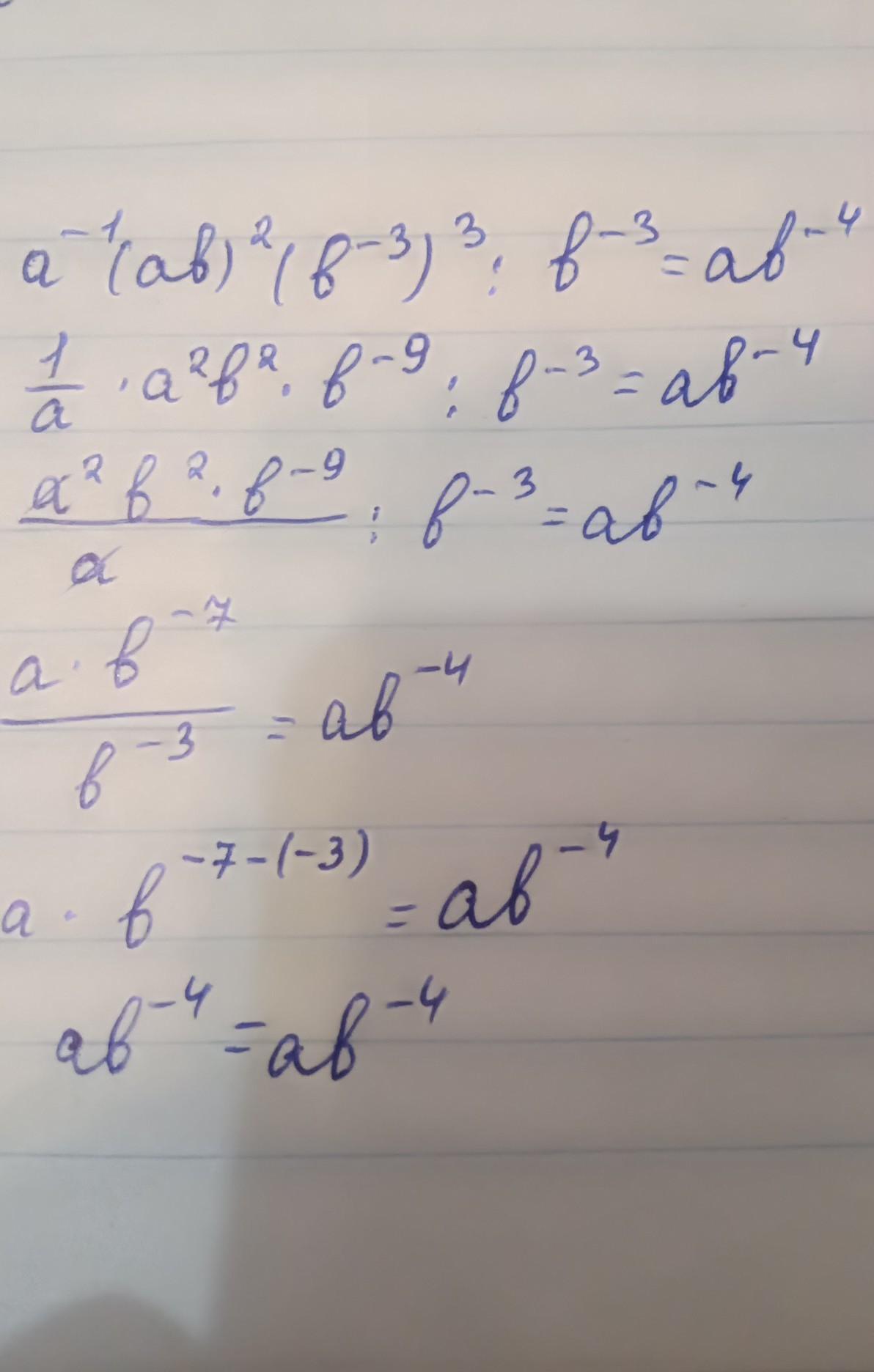 a²b²/a · b⁻⁹ : 1/b³ = a/b⁻⁴