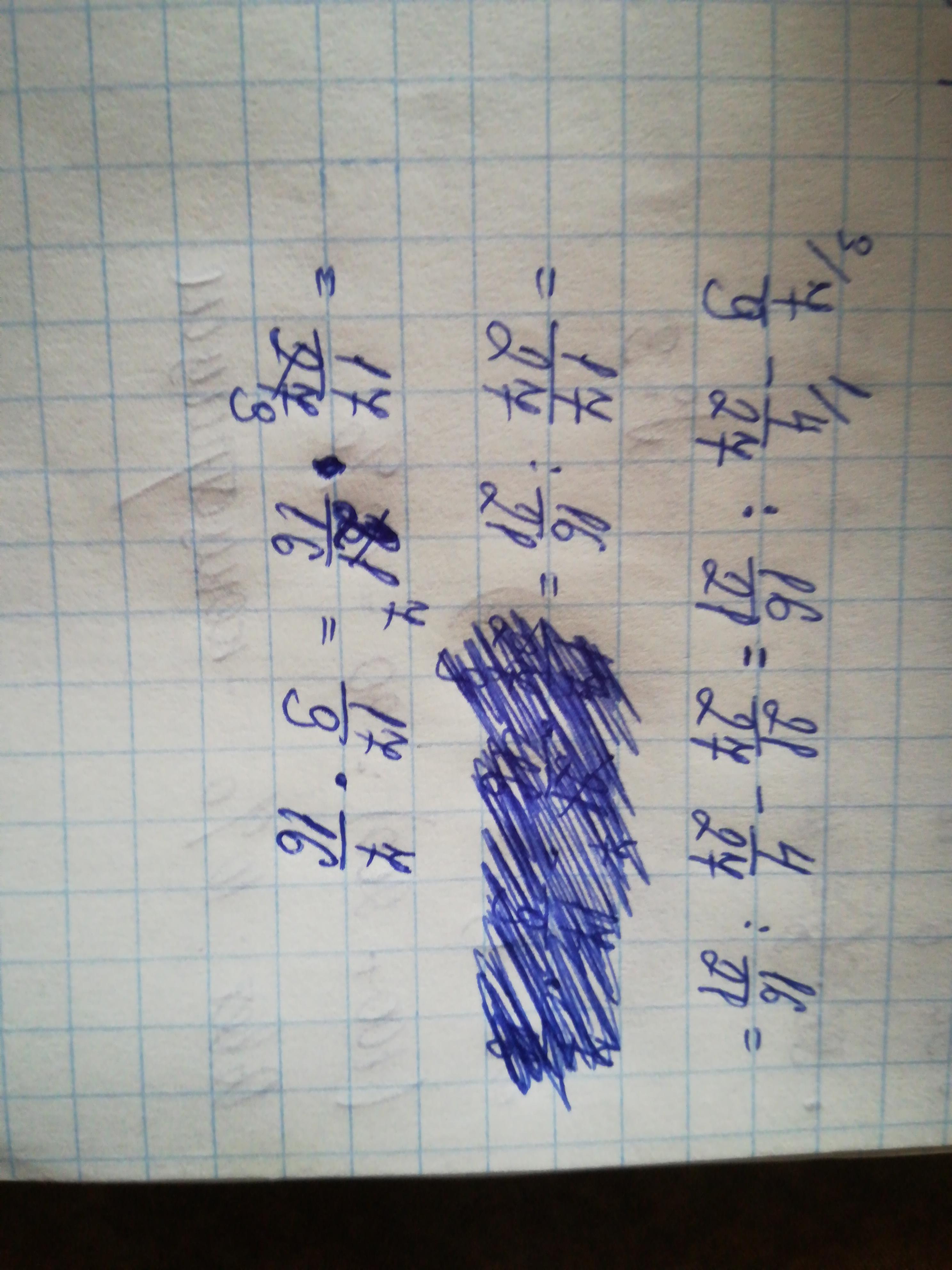4/27 : 16/21 = 4/27 * 21/16 = 7/36 ( 4 и 16 сокращаем на 4; 27 и 21 сокращаем на 3)