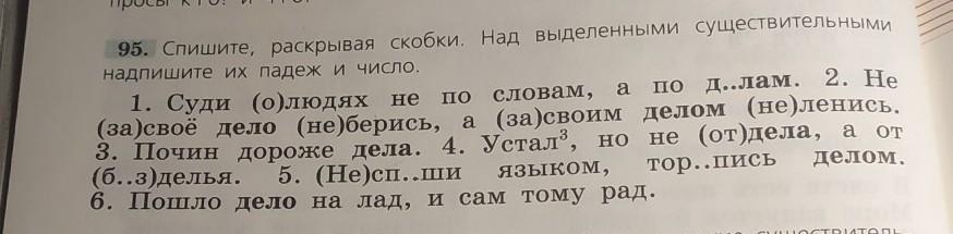 95. Спишите, раскрывая скобки. Над выделенными существительными