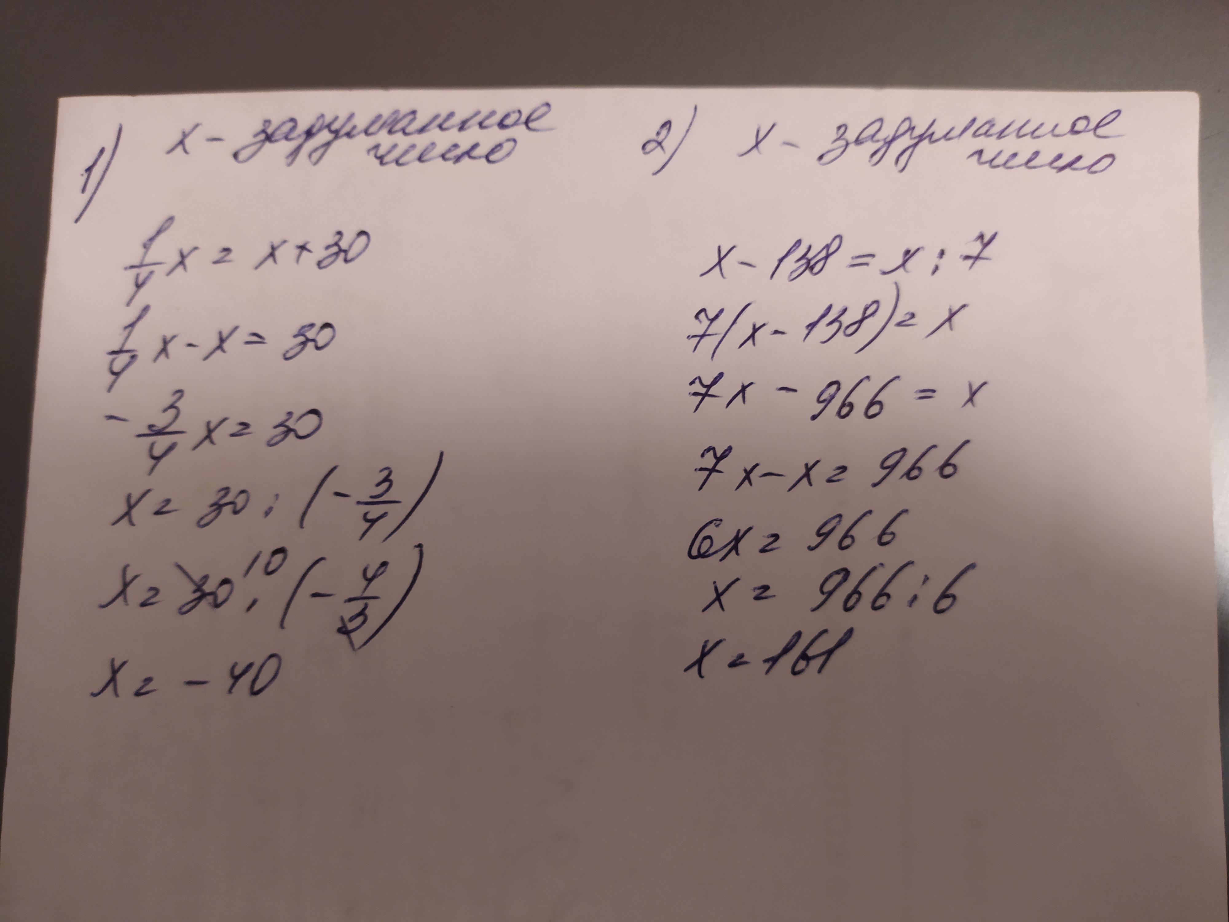 2. Если от задуманного числа отнять 138, то получится число, которое в 7 раз меньше задуманного числа. Найдите это число.