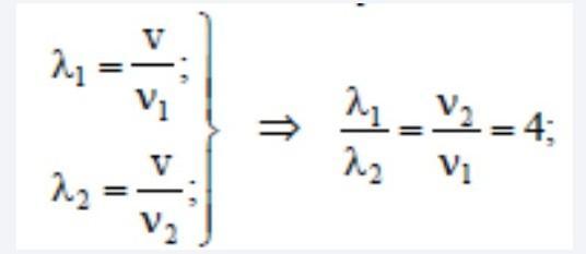 Принято считать, что среди диапазона голосов певцов и певиц женское сопрано занимает частотный интервал от ν1=250Гц до ν2=1000 Гц. Отношение граничных длин звуковых волн λ1/ λ2 этого интервала равно ...