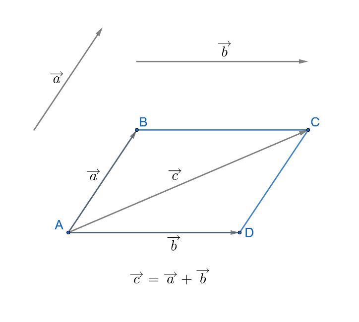 Вектор, лежащий на диагонали, исходящей из общего начала обоих векторов, будет являться суммой исходных векторов.