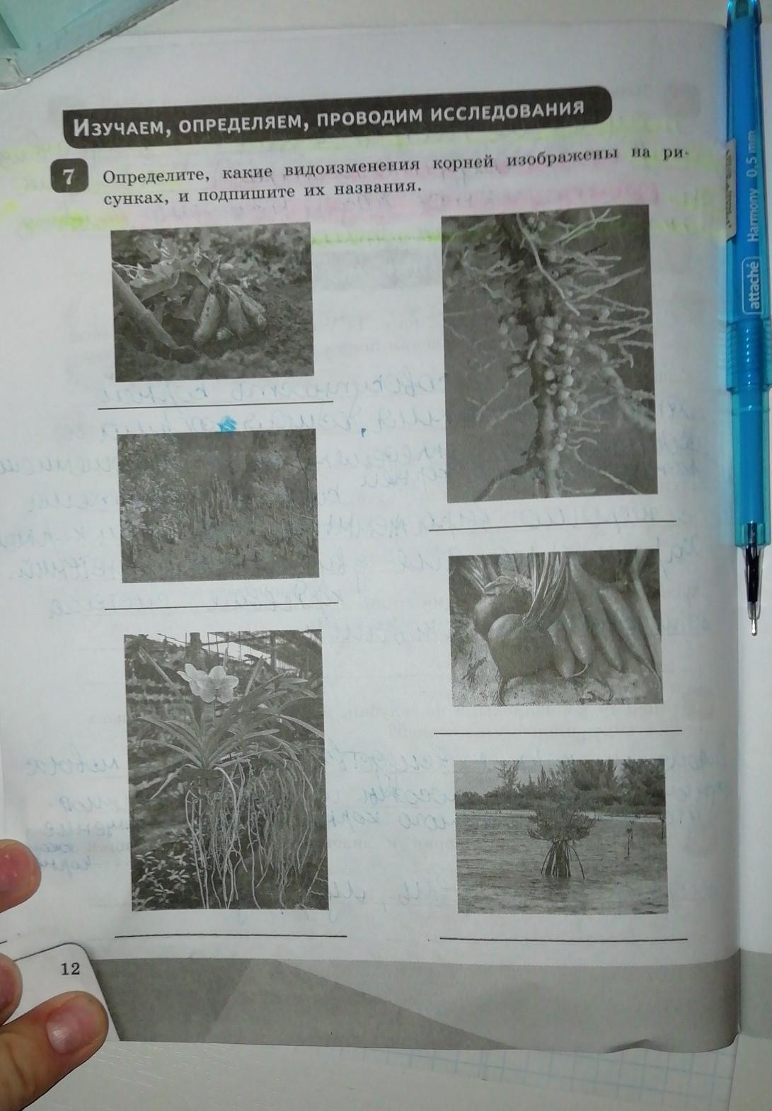 Ответ: верхний левый-корневые шишки, под ним (видно плохо, кажется, дыхательные корни), левый нижний - воздушные корни. Правый верхний--клубеньки, у моркови и свеклы-корнеплоды, правый Нижний - корни подпорки, ходульные корни.