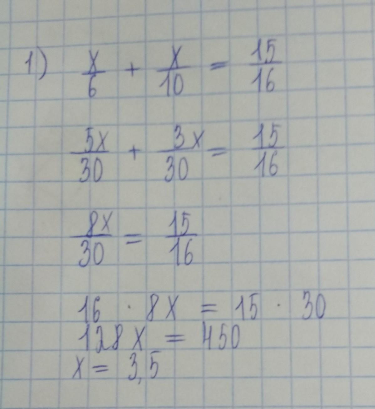 1) Все части умножим на 240. Получим 40х+24х=15*15..........Ясно?