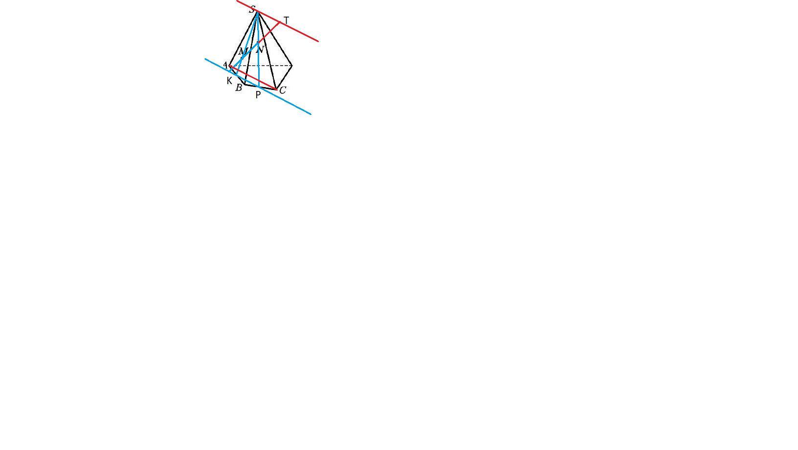 Она параллельна АС, значит, линия пересечения плоскостей SAC и SMN параллельна КР и АС.