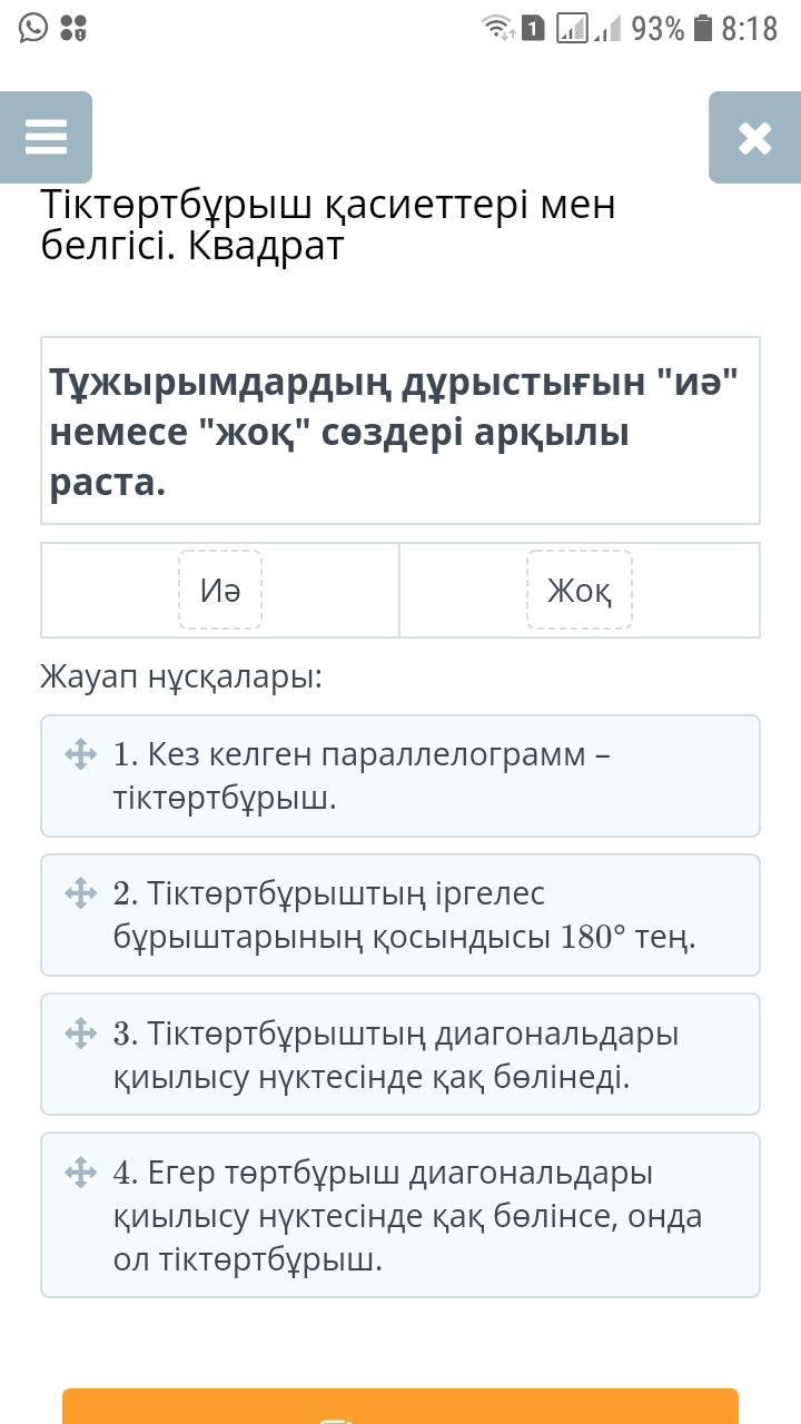 Тұжырымдардың дұрыстығын "иә" немесе "жоқ" сөздері арқылы раста.