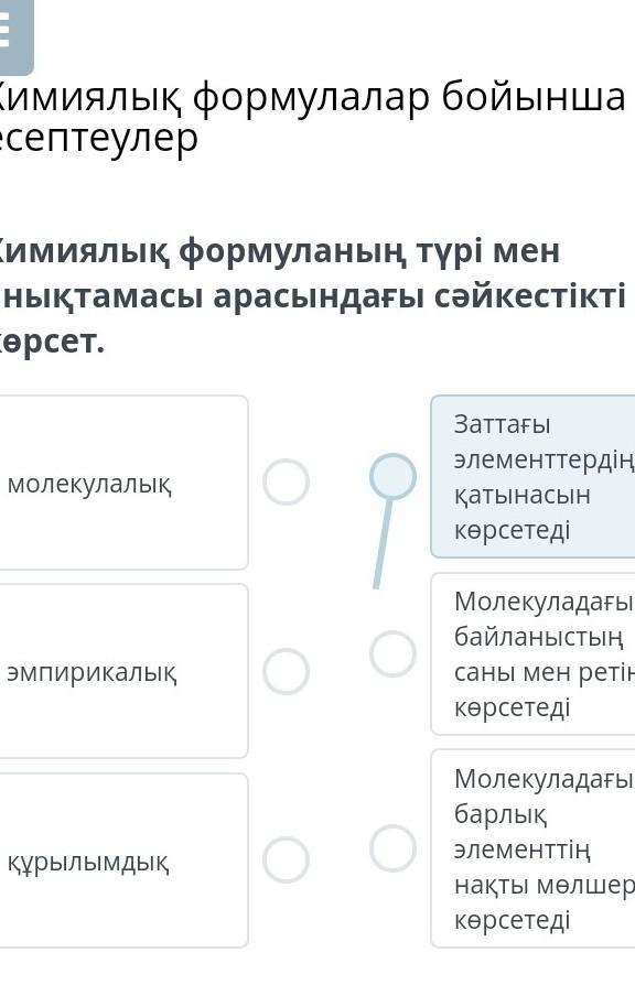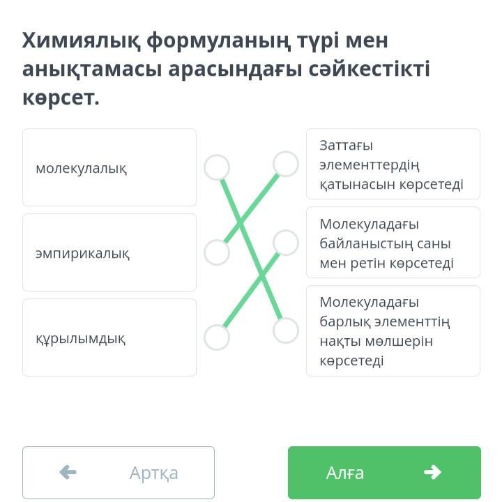 Химиялық формуланың түрі мен анықтамасы арасындағы сәйкестікті көрсет.