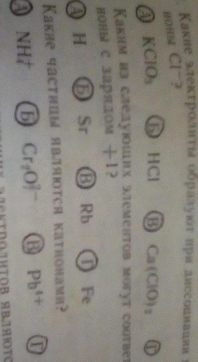 1й вопрос какие электролиты при диссоциации образуют хлорид ионы:KCL3 HCL K(CL2) FECL3