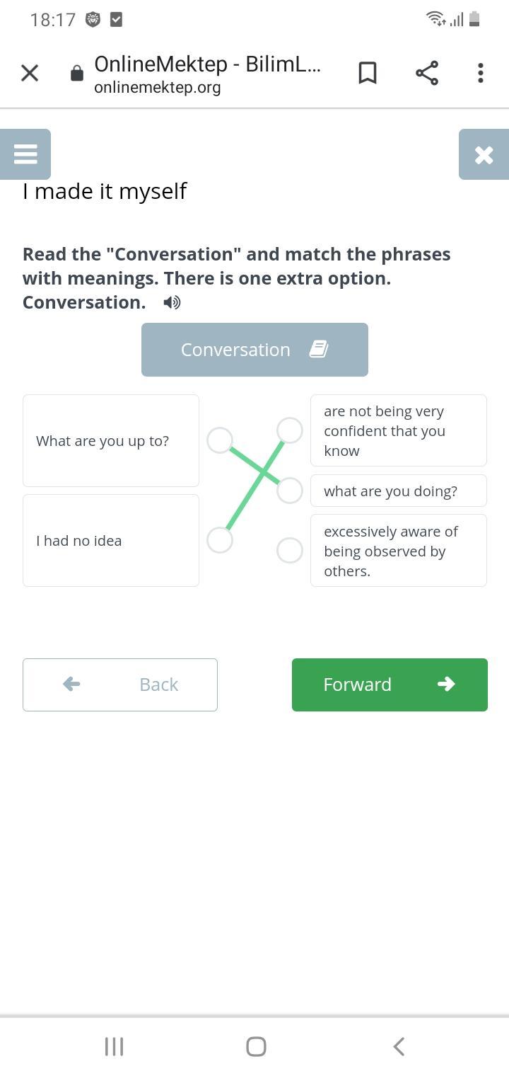 Read the "Conversation" and match the phrases with meanings. There is one extra option. Conversation.