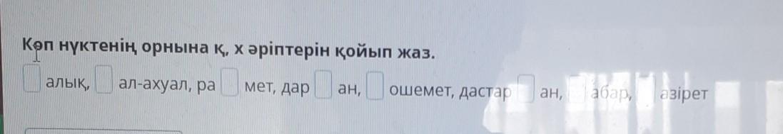 Көп нүктенің орнына қ, x әріптерін қойып жаз.Bilimland