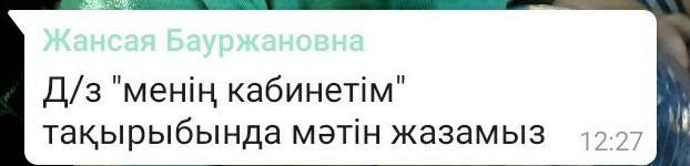 Менің қазақ тілі сыныбым екінші қабатта. Біздің сынып үлкен жəне кең. Сыныпта 14 оқушы болады. Біз қазақ тілі сыныбында əр түрлі тапсырмалар орындаймыз