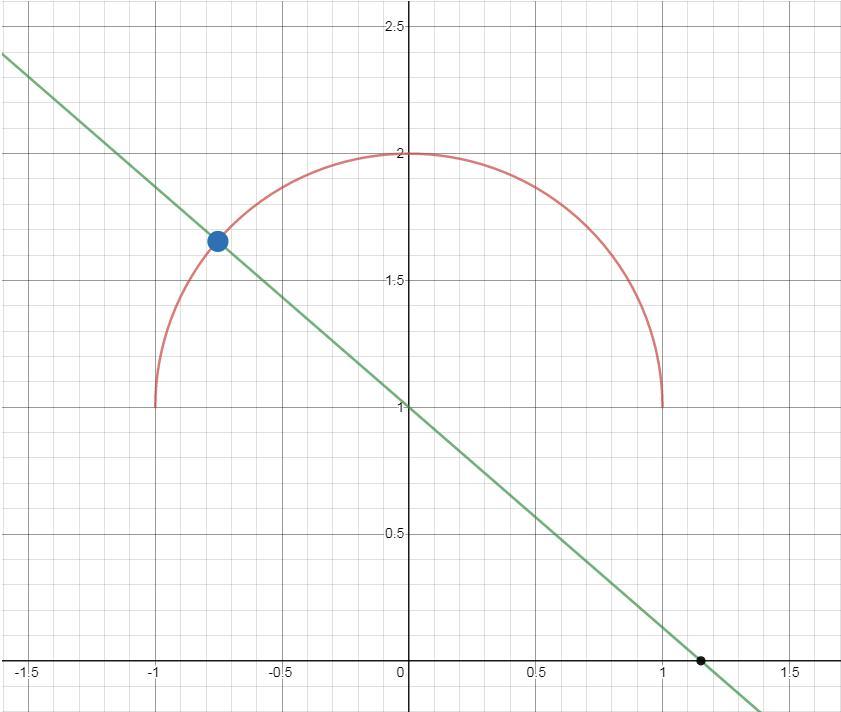 Теперь найдем уравнение прямой, проходящей через точку А и центр окружности (0;1).