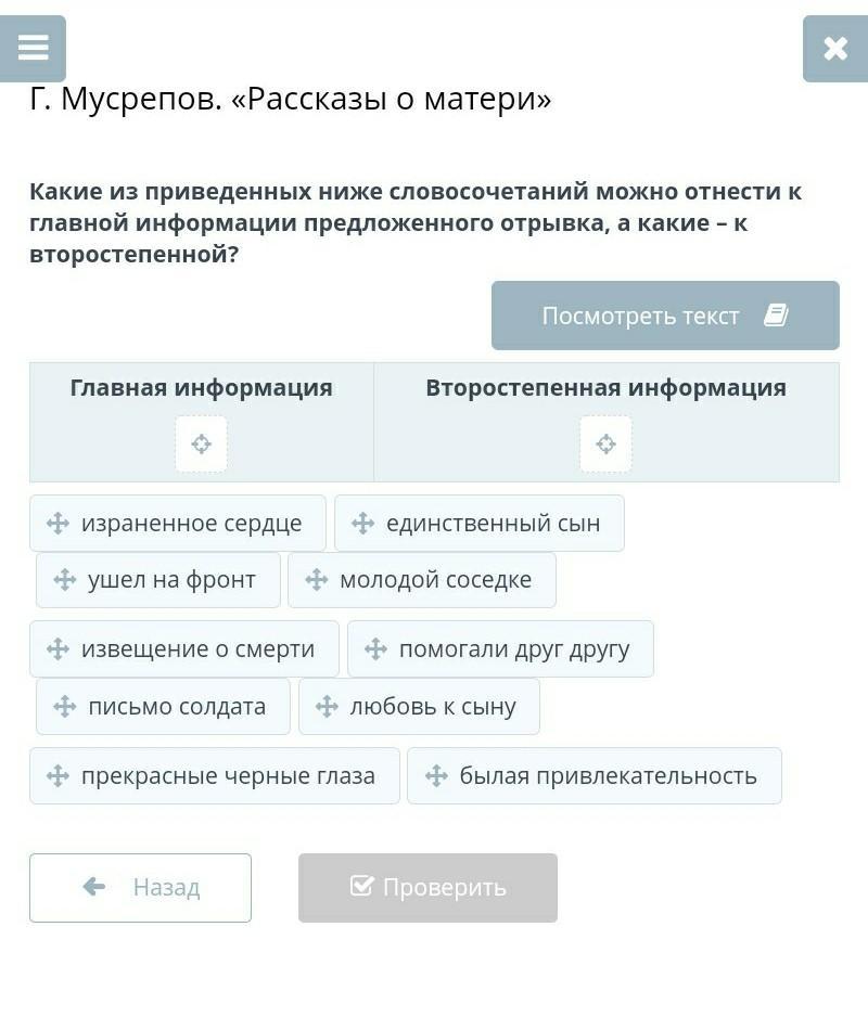 Какие из приведенных ниже словосочетаний можно отнести к главной информации предложенного отрывка, а какие – к второстепенной?