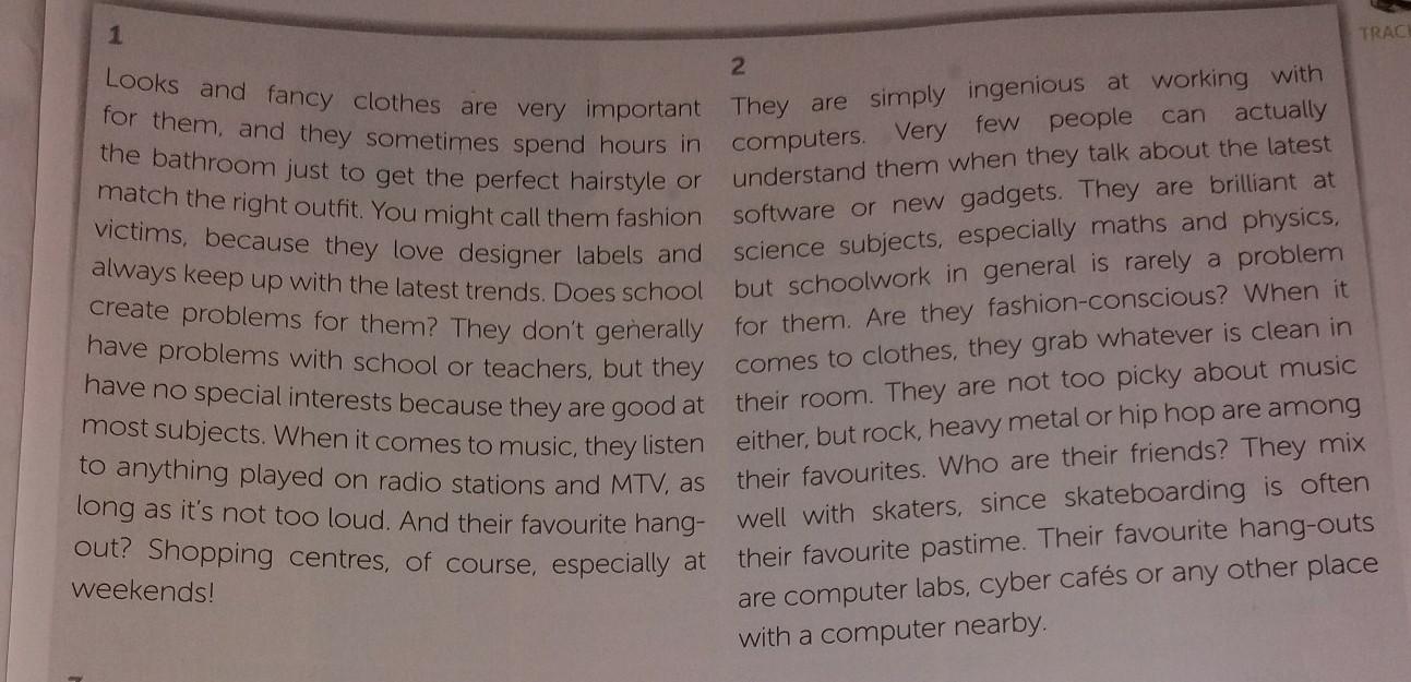 2. Они просто изобретательны в работе с компьютерами. Очень немногие люди могут понять их, когда они говорят о новейшем программном обеспечении или новых гаджетах. Они блестяще изучают естественные науки, особенно математику и физику, но школьная работа в целом для них редко бывает проблемой. Они следят за модой? Когда дело доходит до одежды, они берут все, что есть в комнате. К музыке они тоже не слишком разборчивы, но среди их любимых - рок, хэви-метал или хип-хоп. Кто их друзья? Они хорошо общаются со фигуристами, ведь скейтбординг часто является их любимым занятием. Их любимые заведения - компьютерные классы, интернет-кафе или любое другое место, где поблизости есть компьютер.