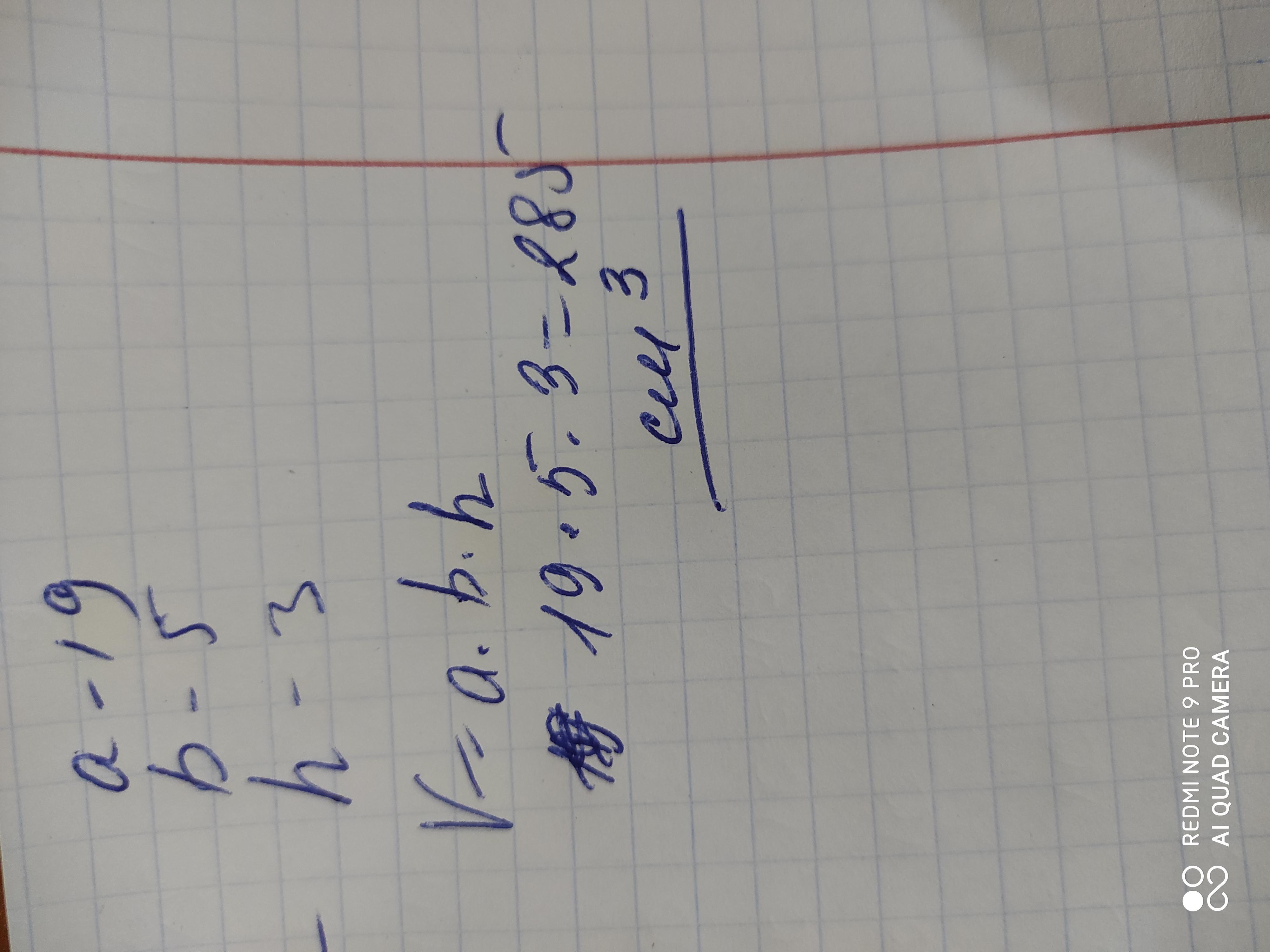 длина прямоугольного параллепипеда равна 19 см, ширина 5 см, высота 3 см. Каков объём прямоугольного параллепипеда? каким числом выражается объём. помогите