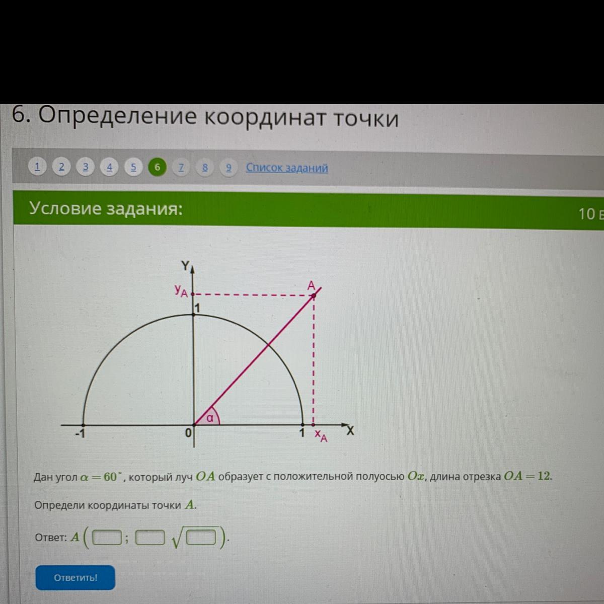 Ха=ОАcosa=12*0.5=6, Ya=OAsina=12*√3/2=6√3