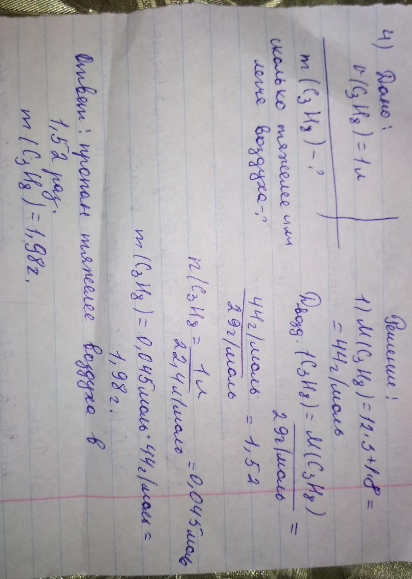 4) Во сколько раз пропан тяжелее или легче воздуха? Какова масса 1 литра пропана в н.с.