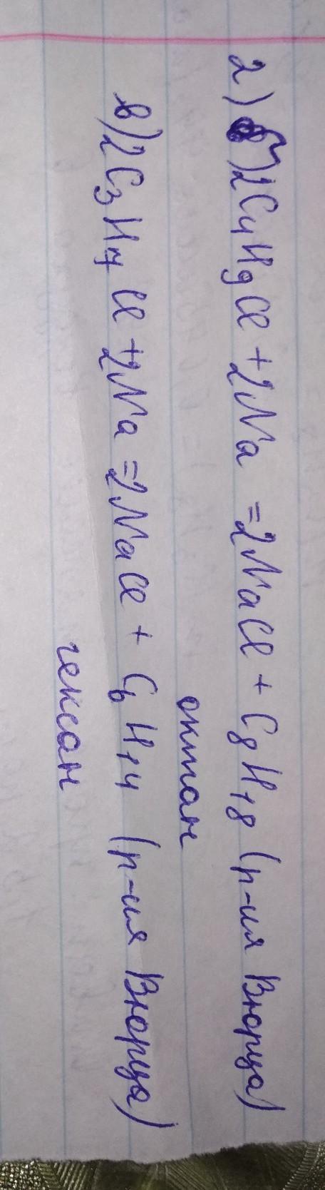 2. Завершите химические реакции a) CH2 = CH-CH2-CHN + H2 = b) С4Н9CL + Na = в) СЗН7 CL + Na =