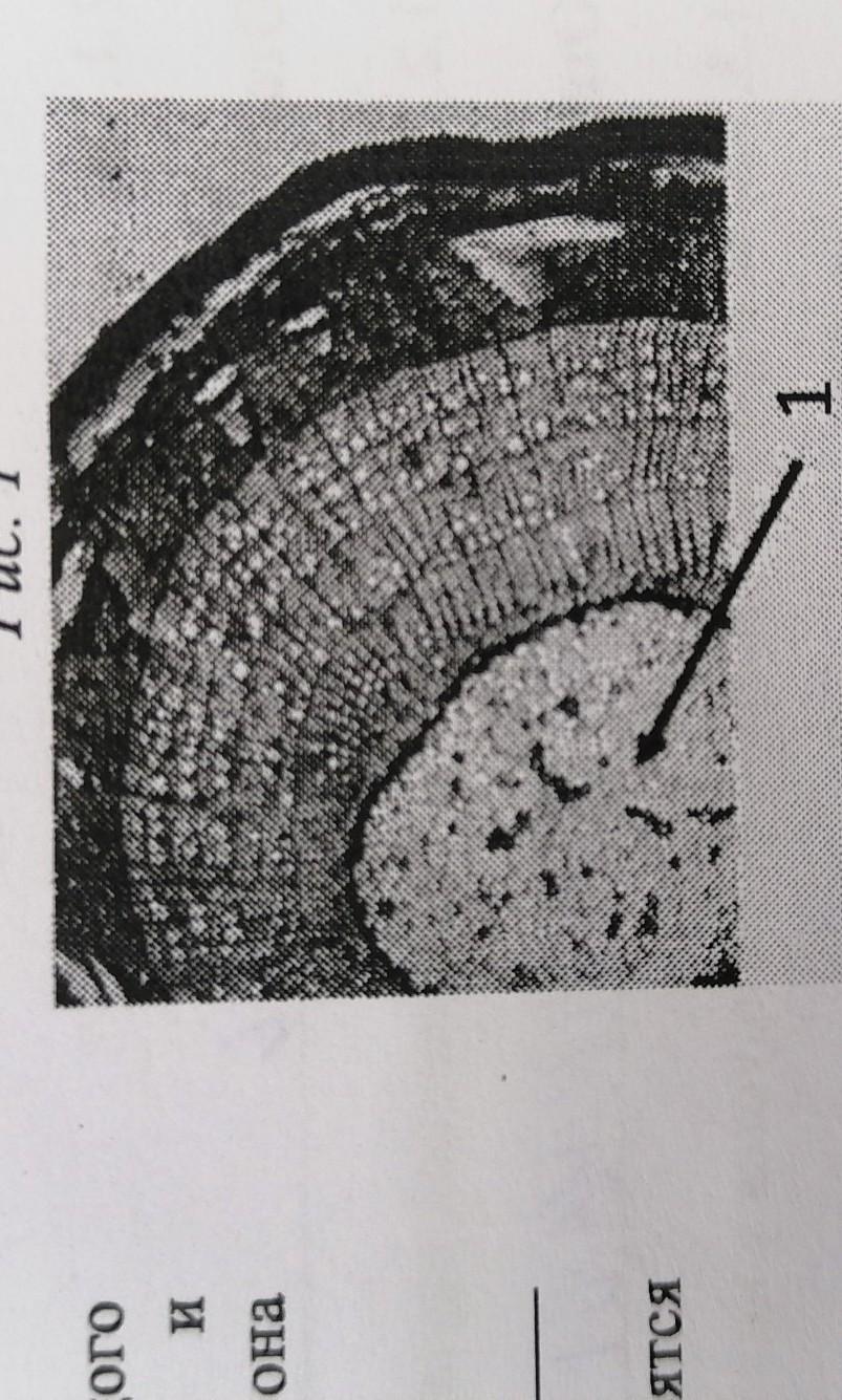 Олеся рассмотрела срез молодого древесного стебля под микроскопом и сделала микроыотографию (рис. 2) что нона обозначила на фотографии цыырой 1