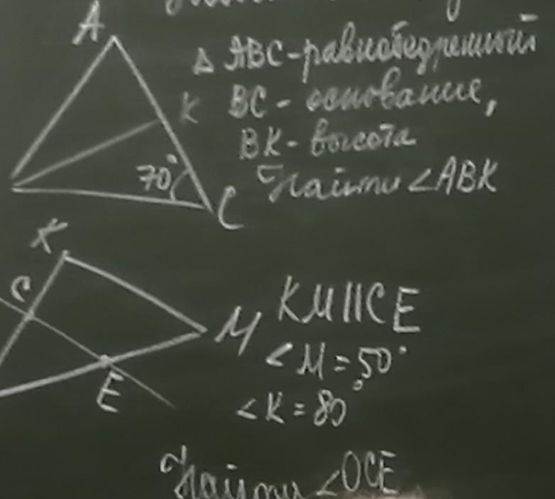 Отсюда, мы можем найти угол ABK. Если угол С = углу B, то от 70° нужно отнять 20° = 50°