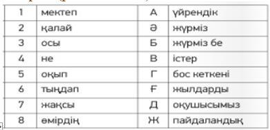 Ответ:8г,4а,2ж,3ғ,5б,6ә,7в,1д