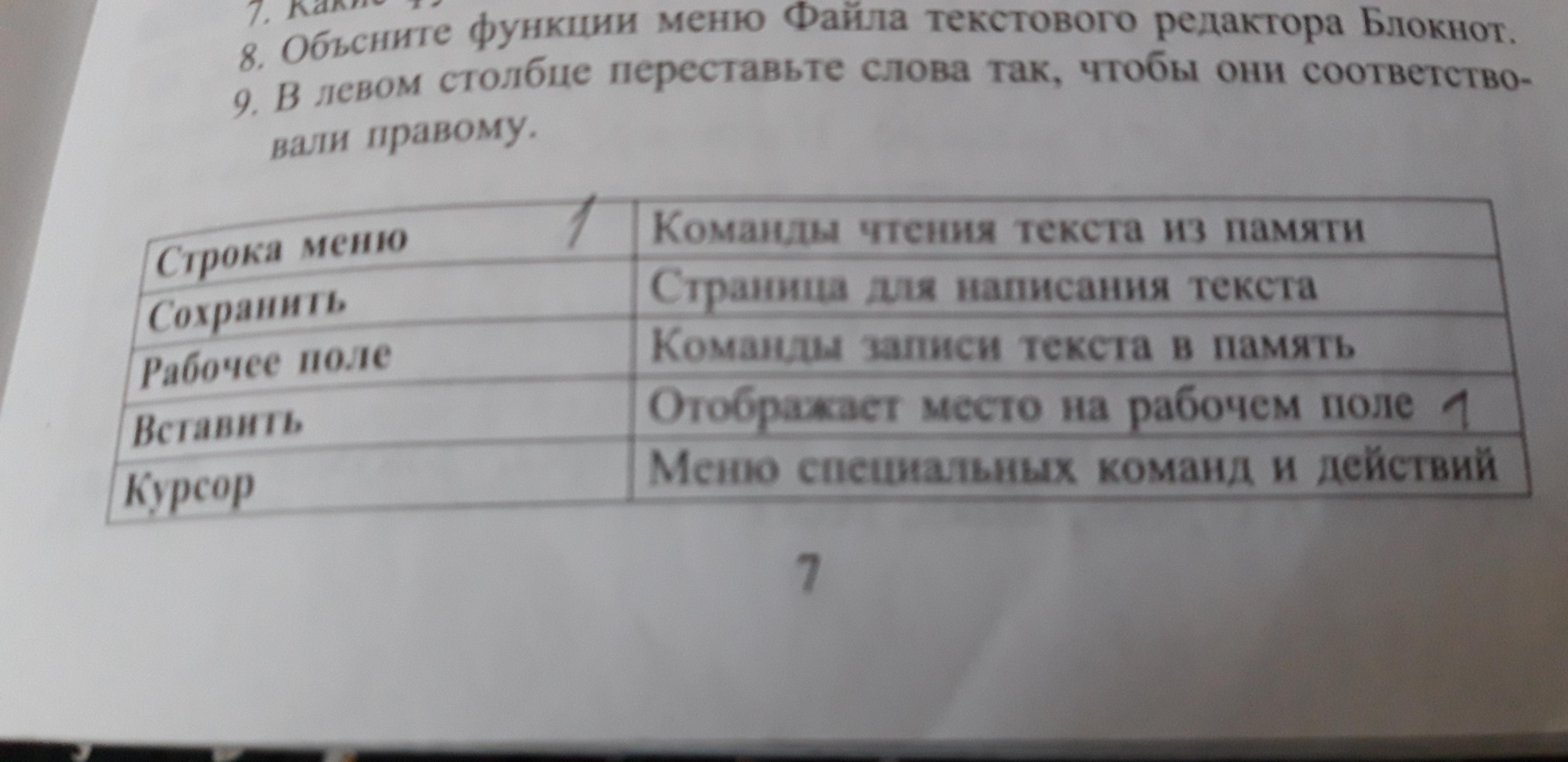 Объяснение: Числа это номер слова в столбце.