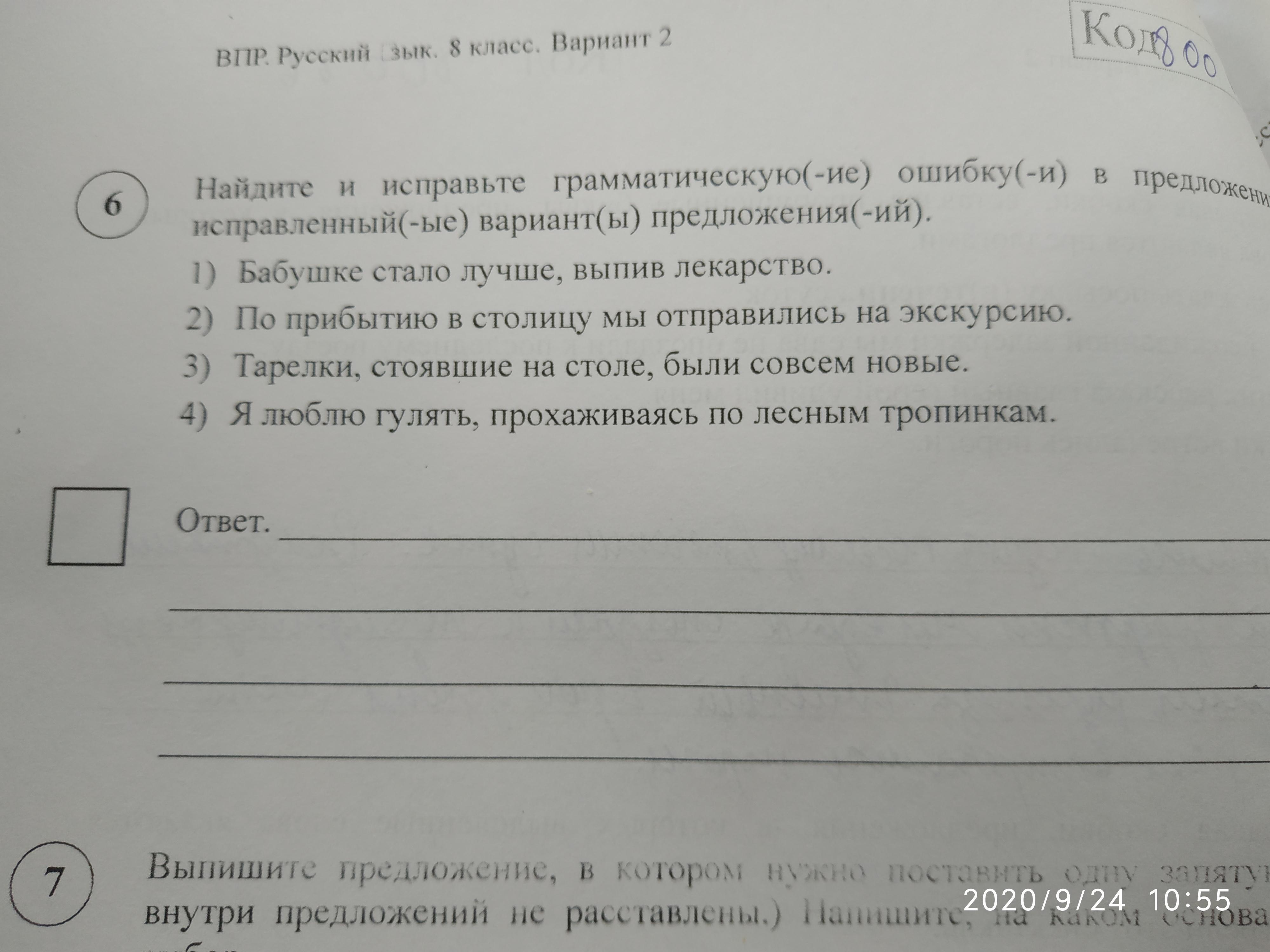 Найдите и исправьте грамматическую ошибку и в предложении запишите исправленный вариант предложения