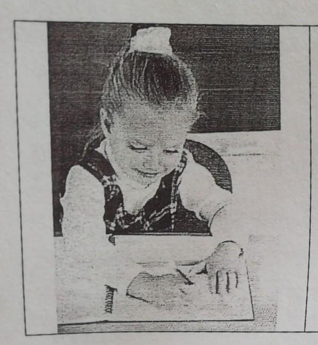 I'd like to describe picture number 1, because it is interesting. The picture shows a little girl, making her homework, or sitting in class and writing.