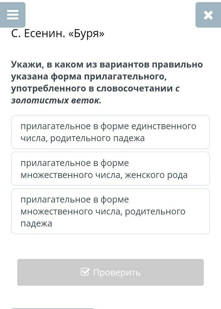 Золотистых веток - прилагательное в форме множественного числа, родительного падежа