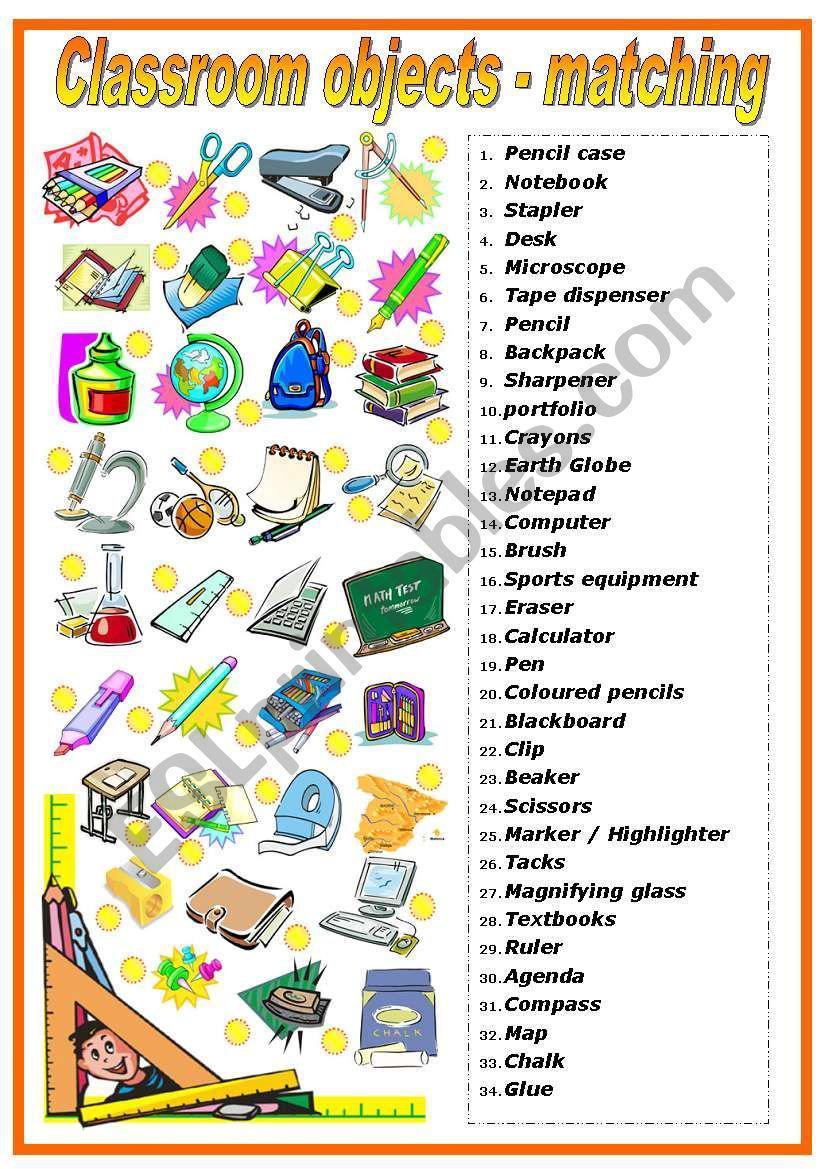 classroom objects matching помогите мне совпадайте по названиям вещей Напишите рядом цифры