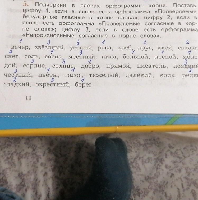 слове есть орфограмма «Проверяемые согласные в корне слова»; цифру 3, если слове есть орфограмма