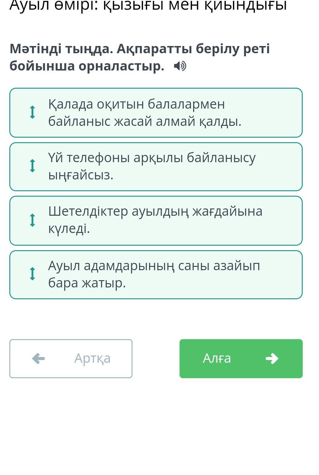 Мәтінді тыңда. Ақпаратты берілу реті бойынша орналастыр.